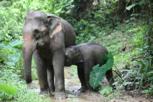 - Participe en una terapia de barro junto a ellos, y posteriormente camine hasta el río para bañarlos.