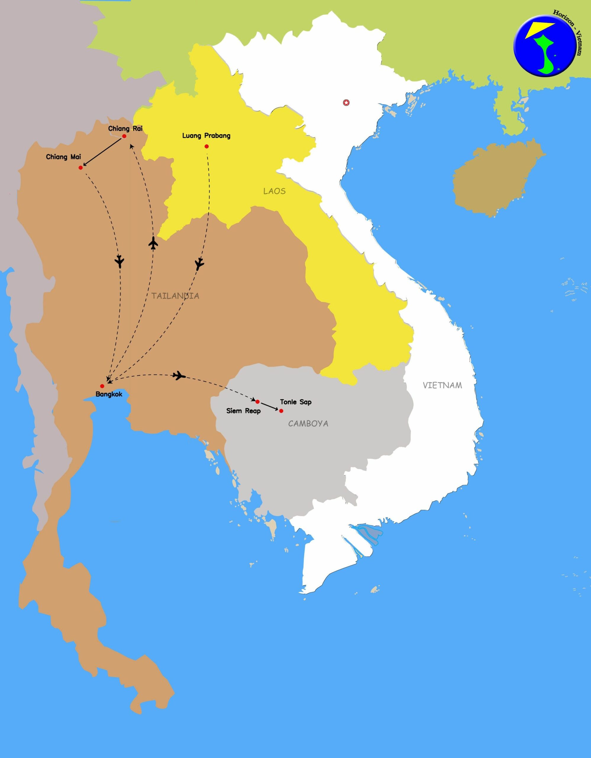 - Todos los boletos aéreos para vuelos nacionales: (LUANG PRABANG – BANGKOK, CHIANG MAI – BANGKOK, BANGKOK – SIEM REAP) en clase económica