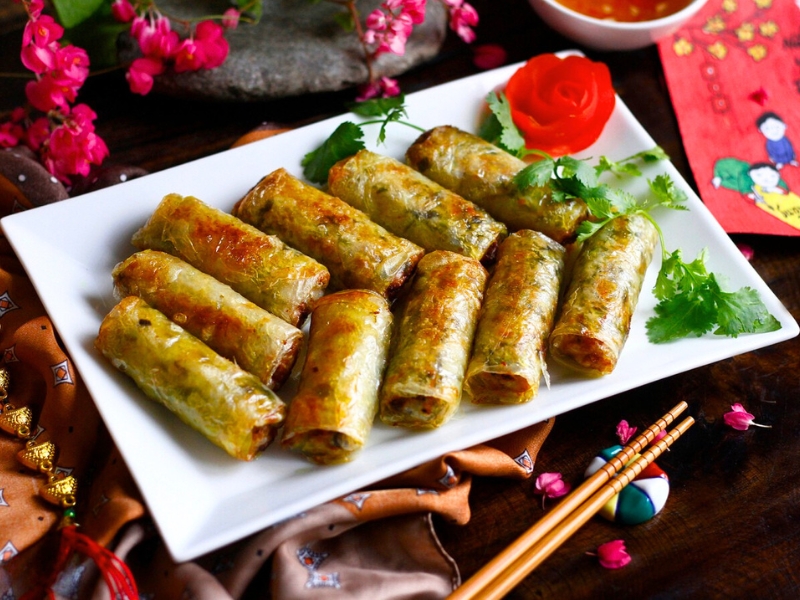 Les nem, ou rouleaux de printemps frits, sont un autre plat indispensable du Têt, particulièrement dans le nord du Vietnam. Ces délices croustillants sont préparés en enroulant une farce composée de viande de porc hachée, de crevettes, de vermicelles de riz, de champignons noirs et de légumes dans des galettes de riz. Une fois frits, ils deviennent dorés et irrésistibles. Servis avec une sauce nuoc mam parfumée et des herbes fraîches, les nem rán symbolisent l’abondance et la richesse. Ce plat est souvent partagé lors des repas de fête, renforçant l’esprit de convivialité.