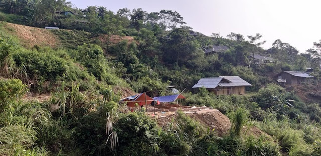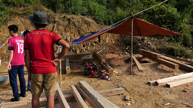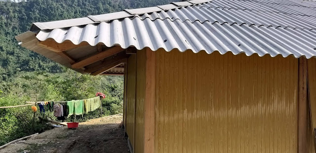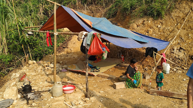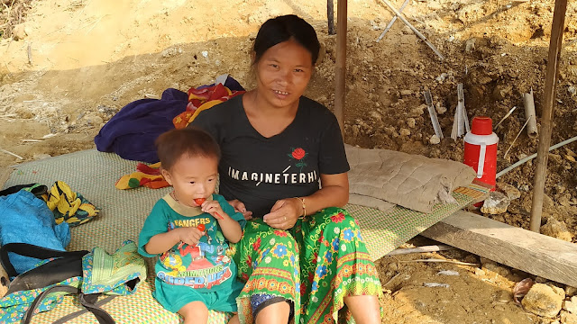 Cuando lo encontramos unas semanas después, el señor Vang había desmontado su antigua casa y la construcción de la nueva ya había comenzado. Mientras esperaban ser reubicados, la pareja y sus 3 hijos vivían bajo una simple lona en el sitio de la obra.