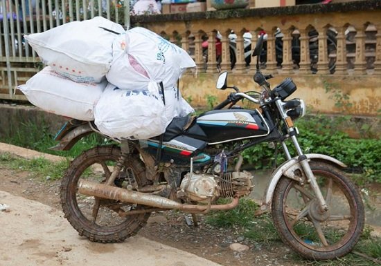 Después de diez horas de viaje, en carreteras realmente deterioradas, llegamos al pie del pueblo. Como el lugar solo es accesible a pie o en moto, planeamos partir al día siguiente a las 5:30 de la mañana para hacer senderismo y cargar los suministros en las motos.