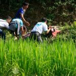 Après 5 heurs de route, nous étions présents à Ba Be et pour y passer une première nuit, très tôt le matin le lendemain, l’équipe de HORIZON VIETNAM TRAVEL et les bénévols (au total 12 personnes) ont commencé la route en direction de Khau Qua et Nam Dai, comme la condition de route est très difficile, nous avons mobilisé les 11 motos et un petit camion spéciale pour transporter les cadeaux pour les habitants. Après 35 km en motos suivant les sentiers de montagne, nous étions présents à l’école de la commune.