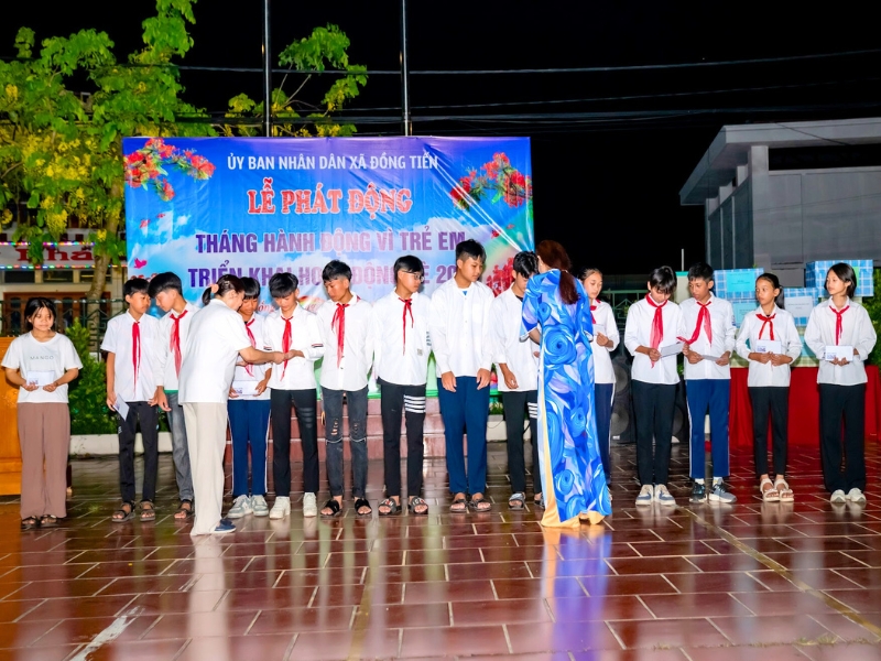 À l’occasion de la Journée internationale de l’enfance le 1er juin, Horizon Vietnam Travel et le groupe de bénévoles Từ Tâm ont également distribué 45 cadeaux aux élèves brillants ayant des conditions difficiles à Đồng Tiến. Ces cadeaux significatifs encouragent les enfants à continuer à étudier et à progresser dans la vie. En outre, Horizon Vietnam Travel et le groupe de bénévoles Từ Tâm ont organisé le lancement du mois d’action pour les enfants, en mettant en place de nombreuses activités bénéfiques et en offrant des cadeaux aux enfants.