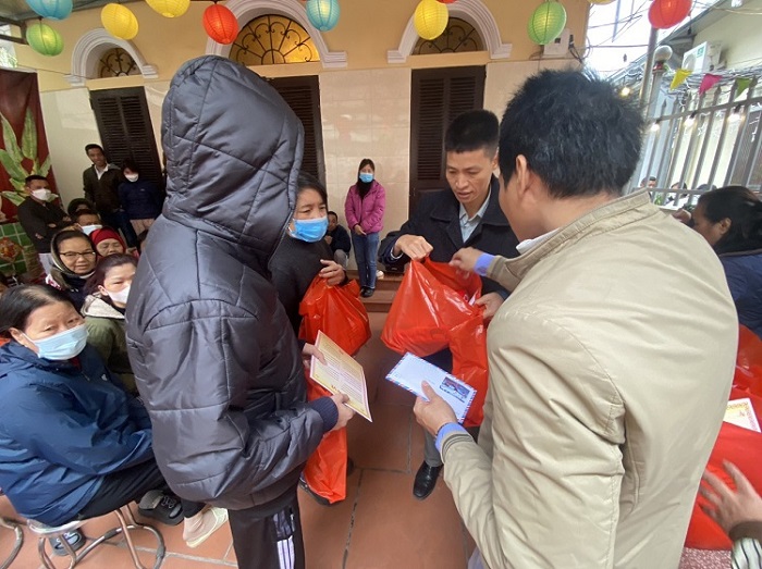 Comenzamos el día visitando a los pacientes en el Hospital General de Ha Dong, Hanoi. Durante la fiesta tradicional del Tet, todos quieren regresar para reunirse con su familia para celebrar el Tet. Sin embargo, muchas personas tienen que pasar el Tet en el hospital debido a una enfermedad grave. Con la voluntad de compartir con la desventaja de los pacientes que tienen que permanecer en el hospital durante el Tet, ofrecimos 100 regalos a los pacientes y sus familias en el hospital.