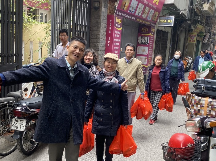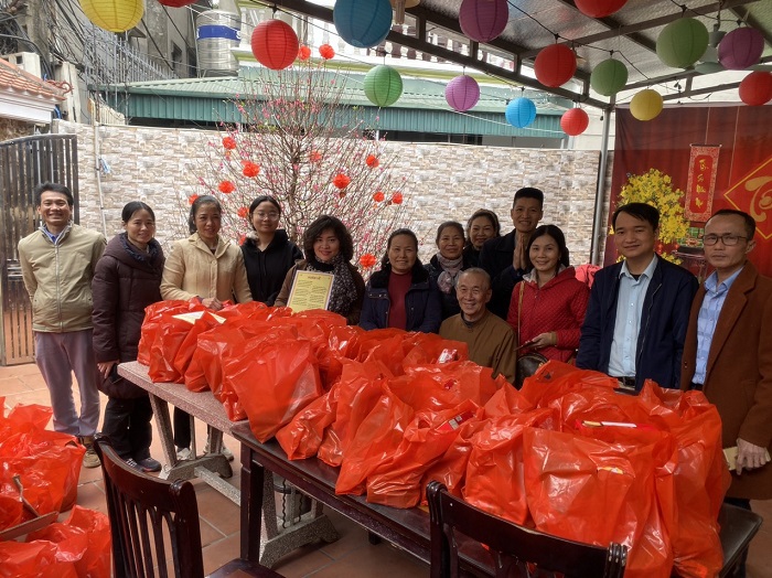 Finalmente, nuestro grupo se detuvo en la « aldea de diálisis Bach Mai ». La « aldea de diálisis Bach Mai » es el lugar donde los pacientes desfavorecidos se alojan cerca del hospital Bach Mai, en Hanoi. Son personas que deben abandonar su ciudad natal para ir a la ciudad a ganarse la vida mientras reciben atención en el hospital, principalmente dializados. Se entregaron más de 120 regalos a los pacientes. Esperamos que estos regalos puedan darles un Tet más cálido y más gratificante.