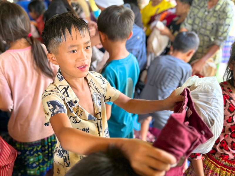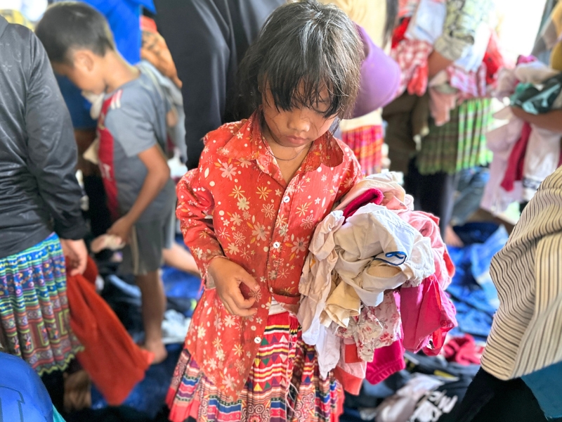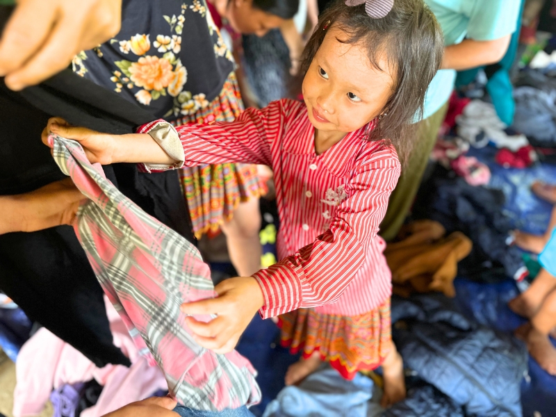 Deseosos de apoyar las acciones humanitarias regulares de Horizon Vietnam Travel, muchos benefactores y nuestros viajeros han donado generosamente ropa usada para que podamos ofrecerla a los niños. Estos regalos fueron entregados personalmente a los niños con el mensaje « Lo que es viejo para algunos, es nuevo para otros », llevando consigo todo el amor y la atención de la comunidad. Gracias a estas donaciones, los niños recibieron ropa adicional para su vida cotidiana, lo que les aportó alegría y consuelo.