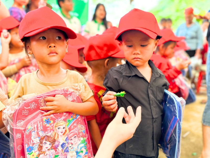 Durante este viaje, Horizon Vietnam Travel no solo brindó su apoyo, sino también regalos prácticos para ayudar a los niños a prepararse de la mejor manera para el nuevo año escolar. Para los 20 estudiantes de secundaria, cada niño recibió una mochila, 10 cuadernos y un estuche de útiles escolares. Los 35 estudiantes de la escuela primaria también recibieron regalos similares, que incluyen una mochila, cuadernos y útiles escolares. Además, 53 niños en edad preescolar recibieron regalos que incluyen una mochila, un gorro, sandalias, toallas y una almohada. Estos regalos no se limitan a proporcionar material escolar, sino que también aportan alegría y motivación para comenzar el nuevo año escolar con entusiasmo.